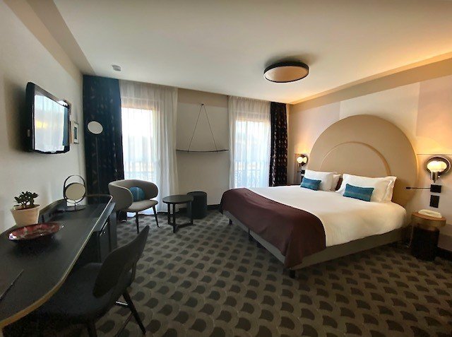 Services : bureau, dressing, télévision satellite, canal +, téléphone, service de réveil, baignoire ou douche, sèche-cheveux, produits d'accueil aux accents locaux, peignoir, chaussons, minibar avec eau plate et pétillante, machine Nespresso, coffre-fort et insonorisation.